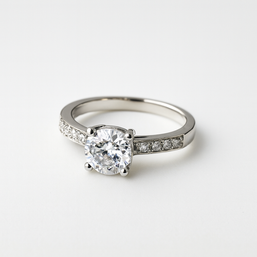 Classic Solitaire Round-Cut Ring with Crystal-Studded Band | Anti Tarnish | Stainless Steel