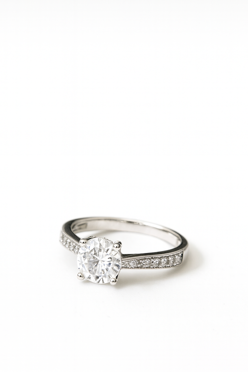 Classic Solitaire Crystal Ring with Side Accents | Anti Tarnish | Stainless Steel